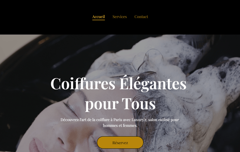 Un site élégant et épuré pour un salon de coiffure chic et luxueux.